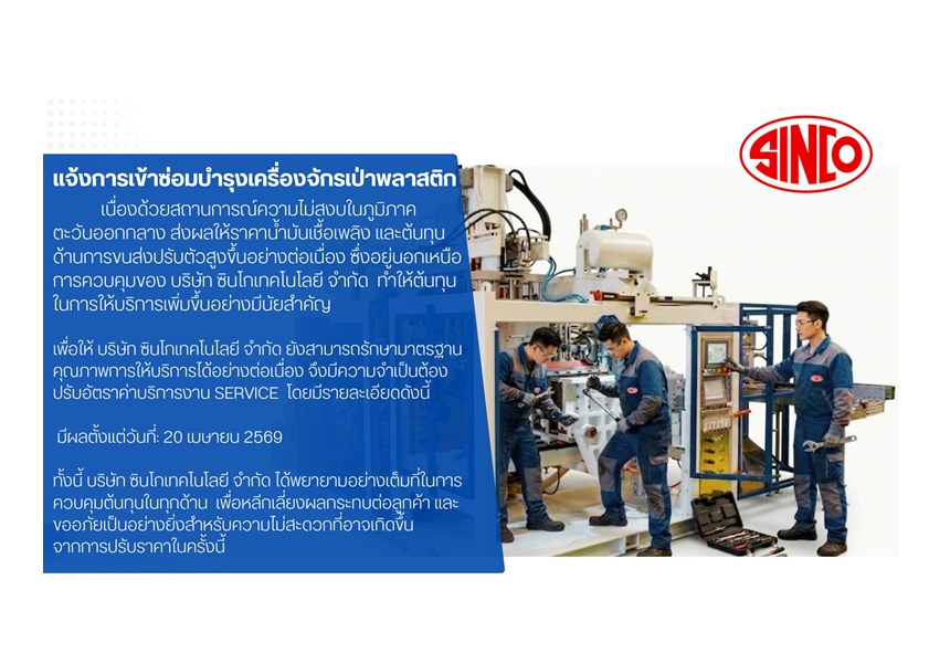"แจ้งขอปรับอัตราค่าบริการเข้าซ่อมบำรุงเครื่องเป่าพลาสติก"