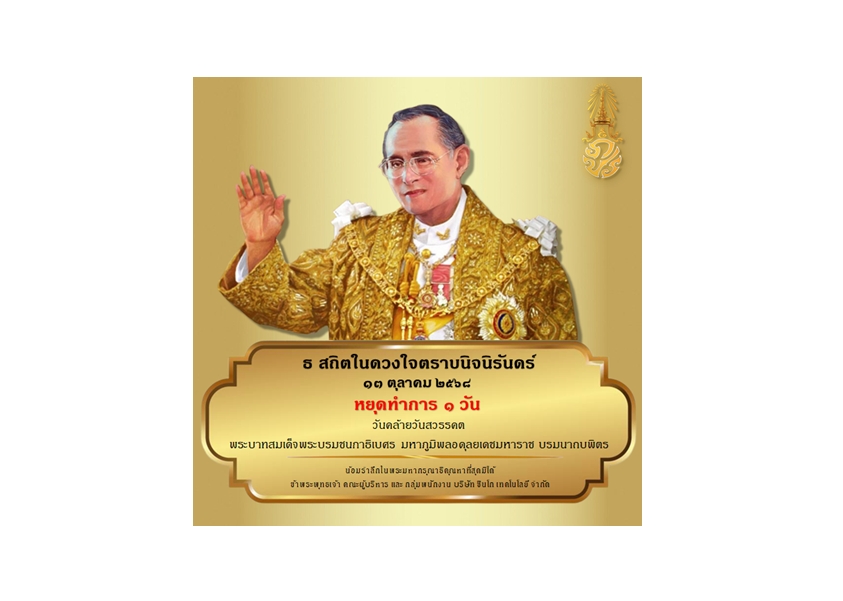 13 ตุลาคม วันคล้ายวันสวรรคต พระบาทสมเด็จพระบรมชนกาธิเบศร มหาภูมิพลอดุลยเดชมหาราช บรมนาถบพิตร